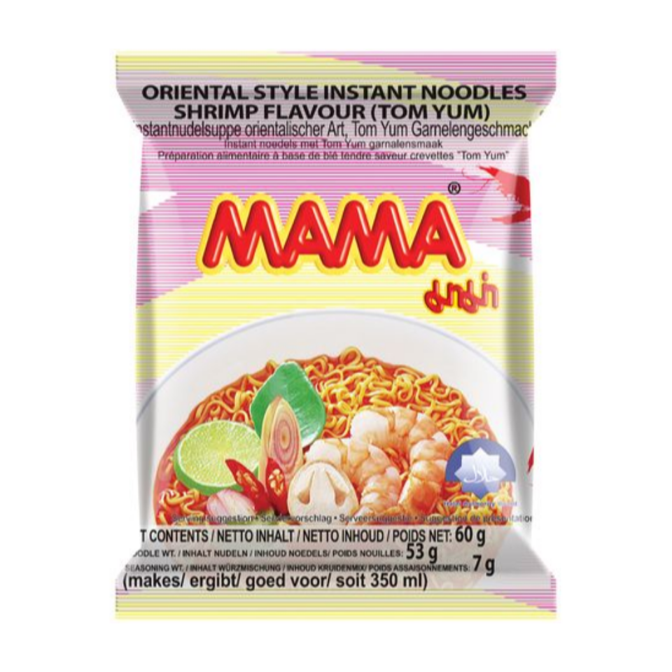 Kogege autentset Tai köögi maitset Mama Instant Nuudlitega – Tom Yum (Krevetid). See 60g pakk pakub rikkalikku, soolast krevettide maitset, mida täiustavad ikoonilised vürtsikad ja hapud tom yumi supi noodid, oskuslikult segatud karri ja sidrunheinaga. Mugavuse ja peene maitse jaoks lisage lihtsalt kuum vesi ja kaasasolev vürtsisegu, laske 3-4 minutit maitsel areneda, et saada keerukas ja rahuldustpakkuv puljong, mis kehastab iga suutäiega traditsioonilist Tai olemust. Täiuslik kiireks ja elegantseks eineks, mis ei tee kunagi järeleandmisi maitses.