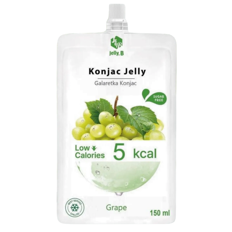 Jelly.B 魔芋果冻绿葡萄味提供清爽的水果风味,零碳水化合物和零糖分。设计方便,其150毫升包装配有可重新封口的盖子,非常适合随时享用。每份仅含6千卡,这款零食结合了细腻的甜味和魔芋的抑制食欲功效,提供轻盈而令人满足的选择,让您整天保持充满活力。